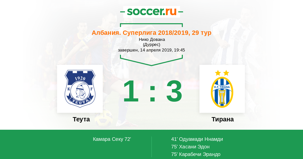 Теута - Тирана: обзор матча 14 апреля 2019
