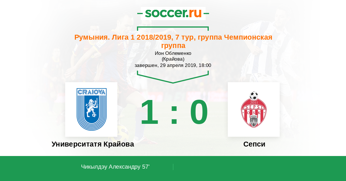 Университатя Крайова - Сепси: обзор матча 29 апреля 2019