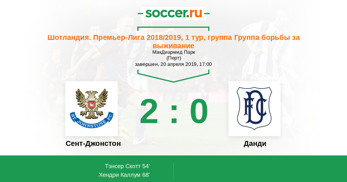 Сент-Джонстон - Данди: обзор матча 20 апреля 2019