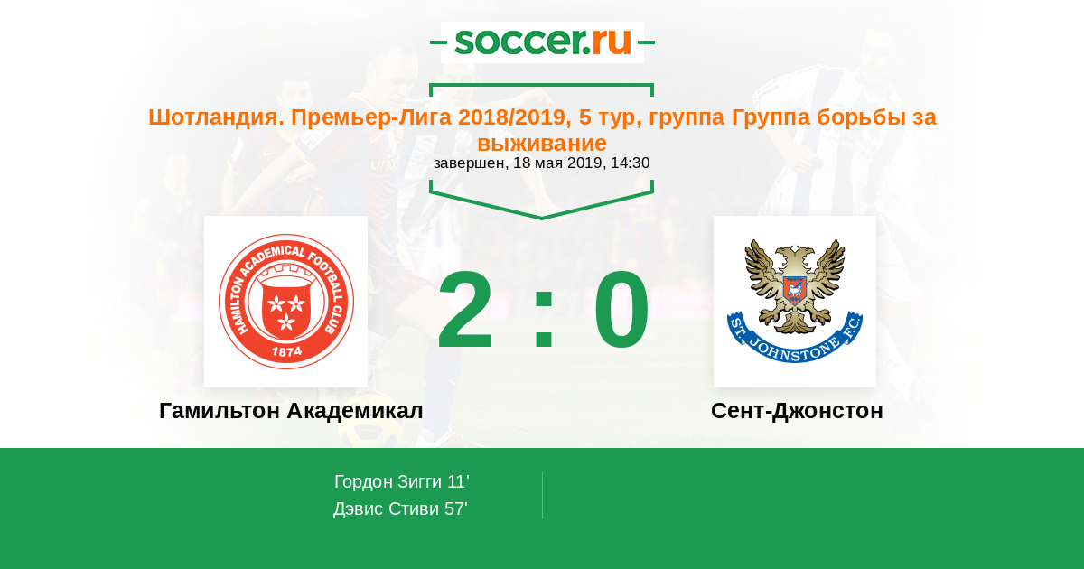 Гамильтон Академикал - Сент-Джонстон: обзор матча 18 мая 2019