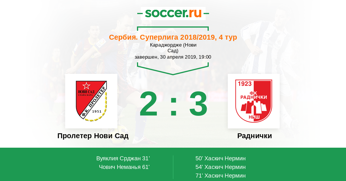 Пролетер Нови Сад - Раднички: обзор матча 30 апреля 2019