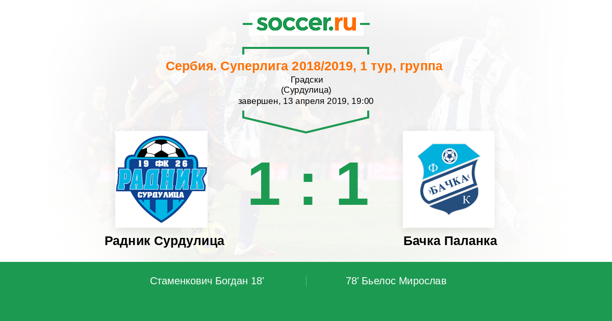 Радник Сурдулица - Бачка Паланка: обзор матча 13 апреля 2019