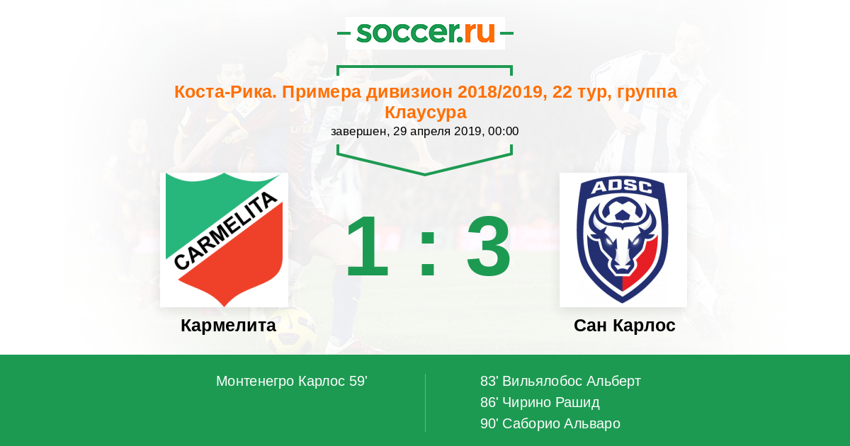 Кармелита - Сан Карлос: обзор матча 29 апреля 2019
