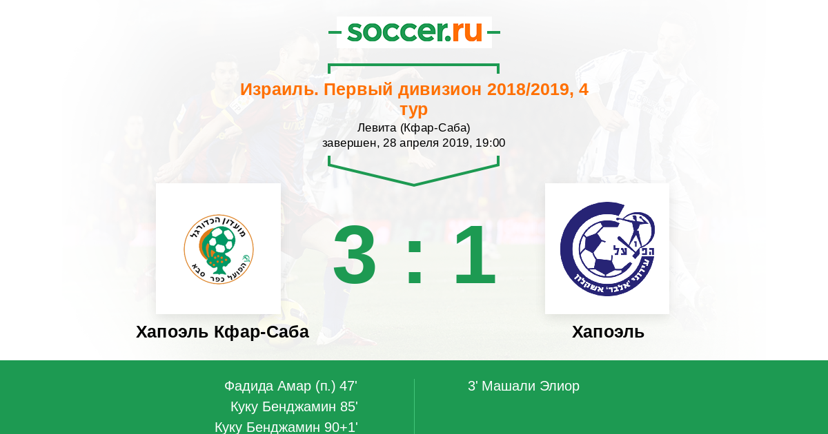 Хапоэль Кфар-Саба - Хапоэль: обзор матча 28 апреля 2019