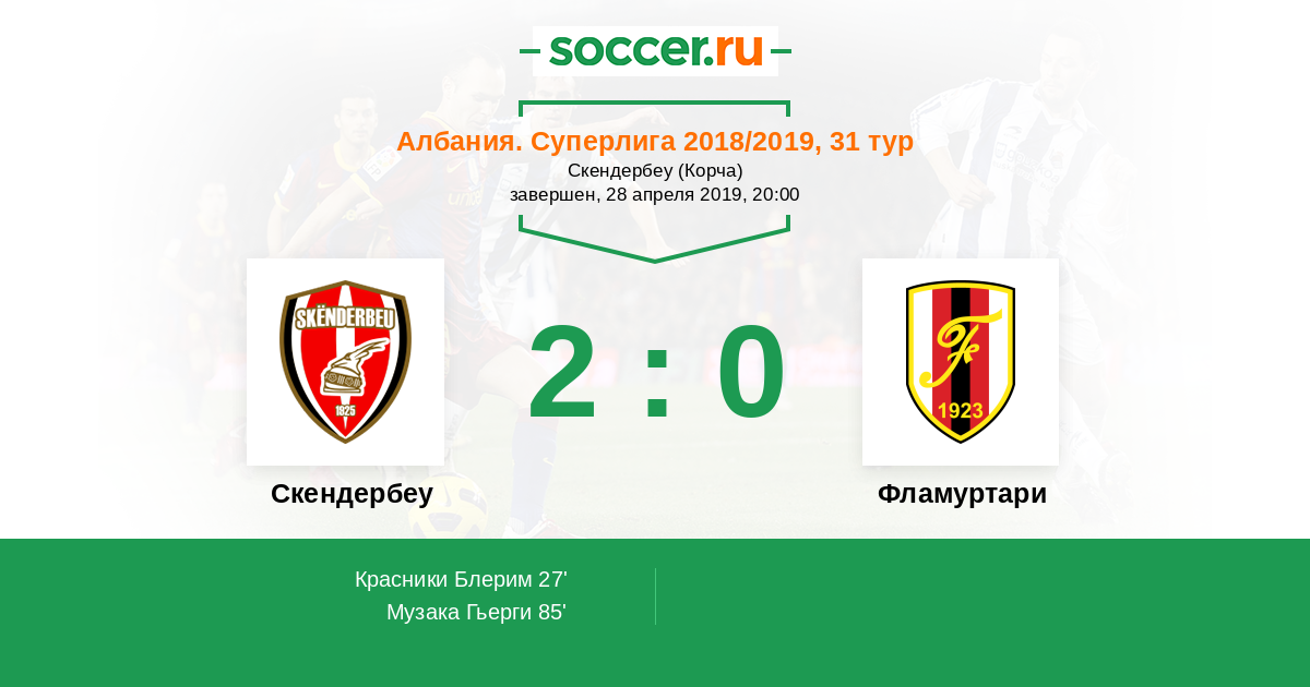 Скендербеу - Фламуртари: обзор матча 28 апреля 2019