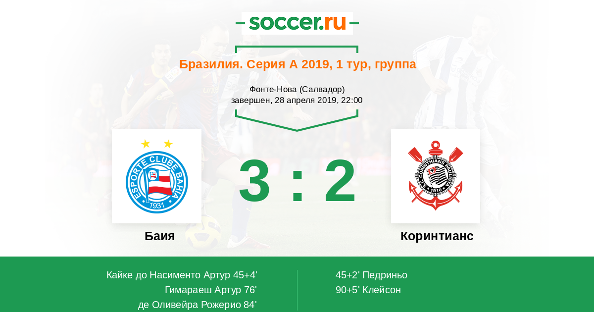 Баия - Коринтианс: обзор матча 28 апреля 2019