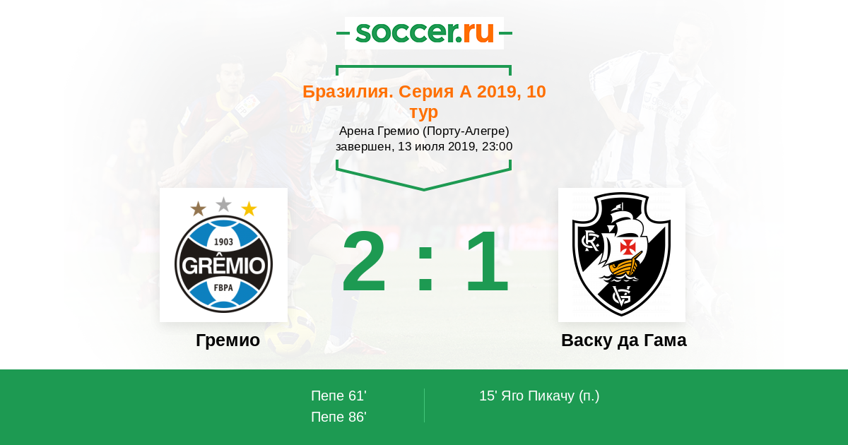 Гремио - Васку да Гама: обзор матча 13 июля 2019