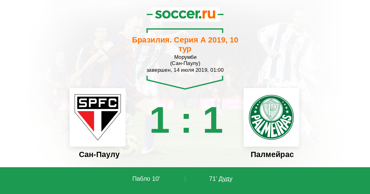 Сан-Паулу - Палмейрас: обзор матча 14 июля 2019