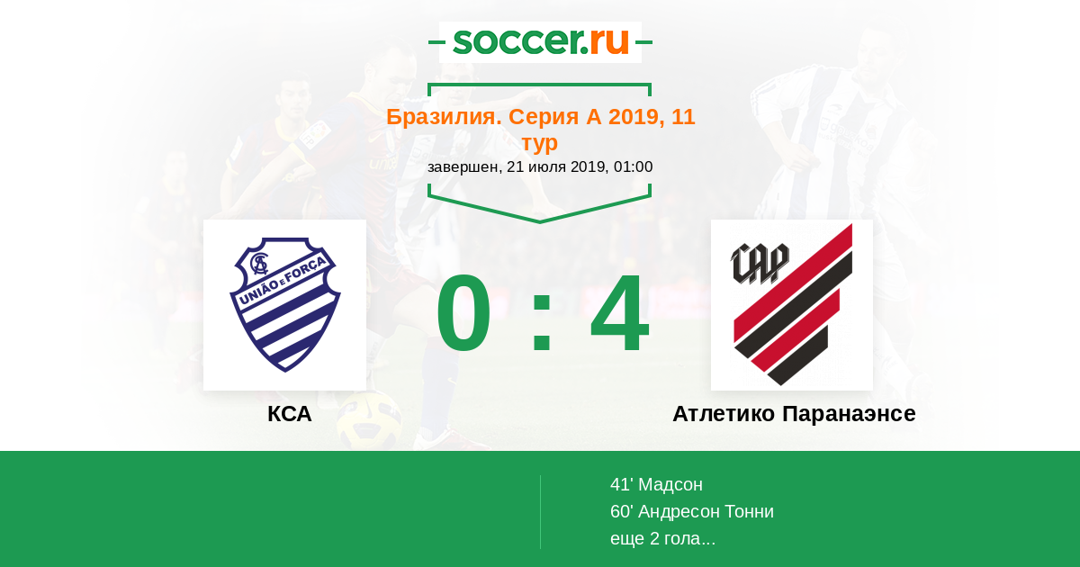 КСА - Атлетико Паранаэнсе: обзор матча 21 июля 2019