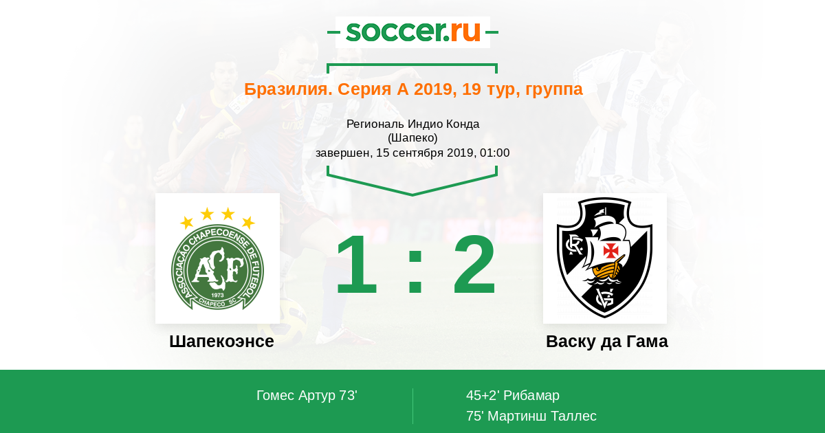 Шапекоэнсе - Васку да Гама: обзор матча 15 сентября 2019