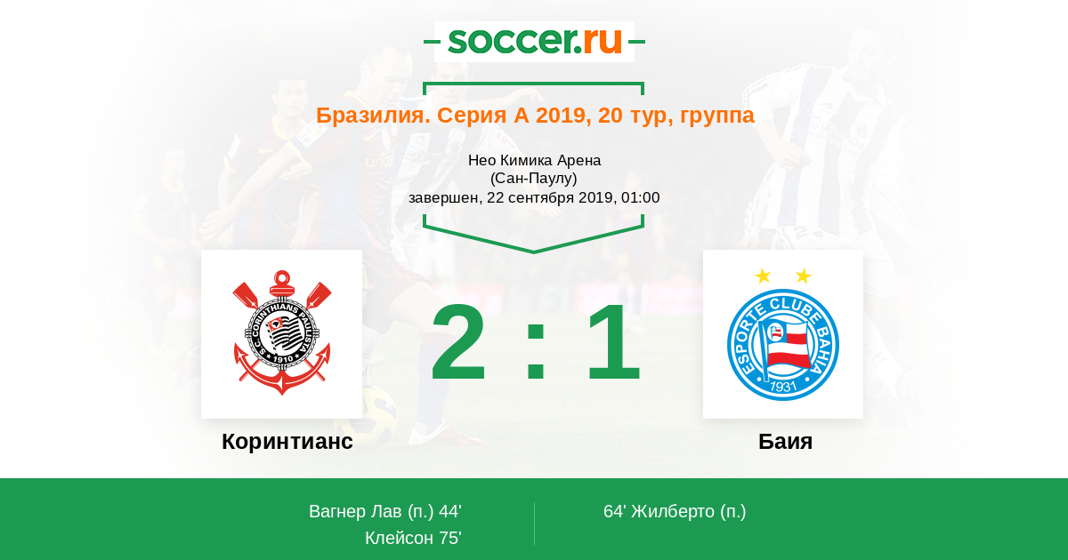Коринтианс - Баия: обзор матча 22 сентября 2019