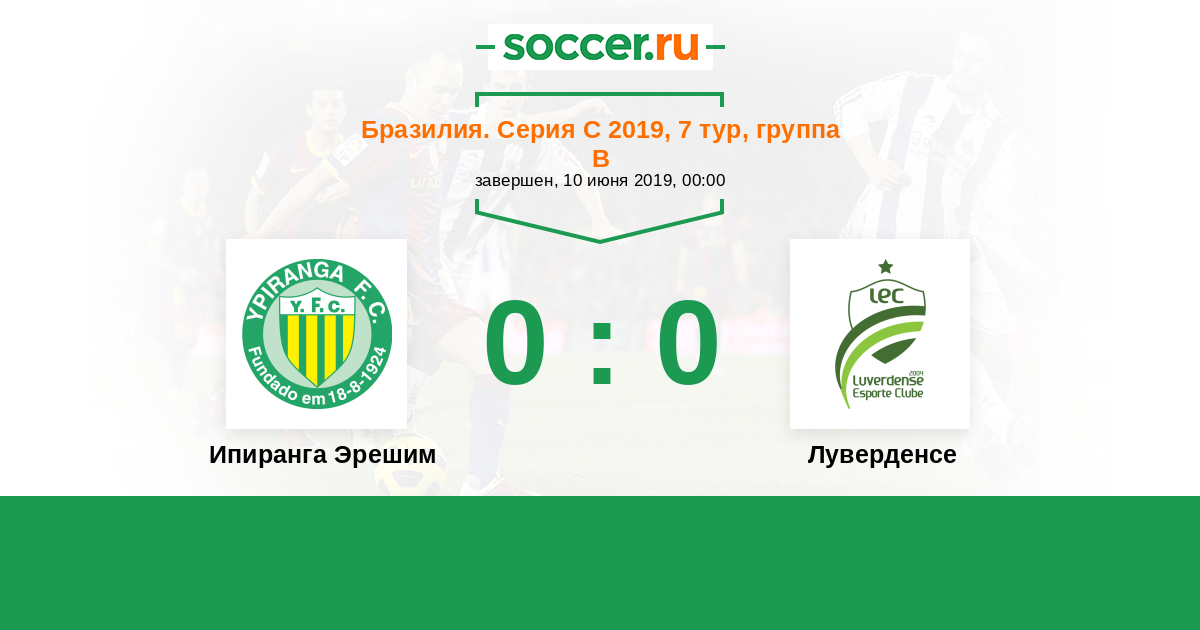 Ипиранга Эрешим - Луверденсе: обзор матча 10 июня 2019