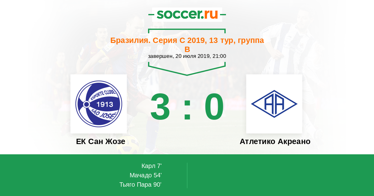 ЕК Сан Жозе - Атлетико Акреано: обзор матча 20 июля 2019