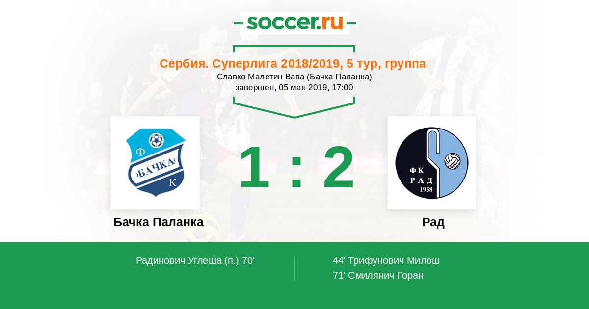 Бачка Паланка - Рад: обзор матча 5 мая 2019