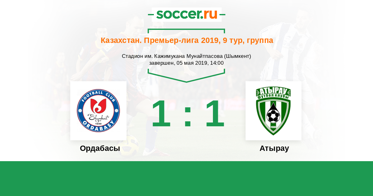 Ордабасы - Атырау: обзор матча 5 мая 2019