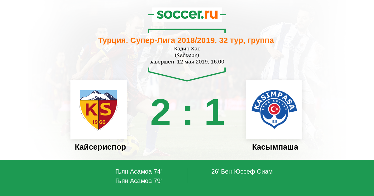 Кайсериспор - Касымпаша: обзор матча 12 мая 2019