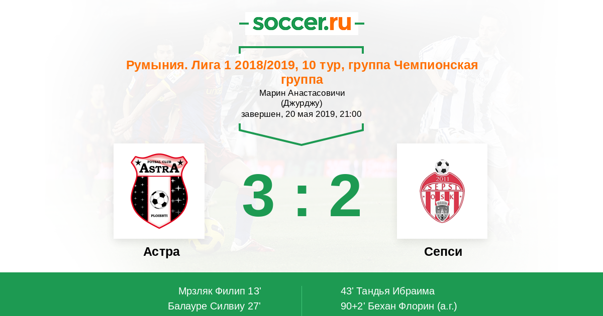Астра - Сепси: обзор матча 20 мая 2019