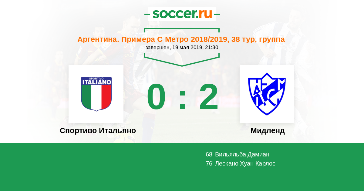 Спортиво Итальяно - Мидленд: обзор матча 19 мая 2019