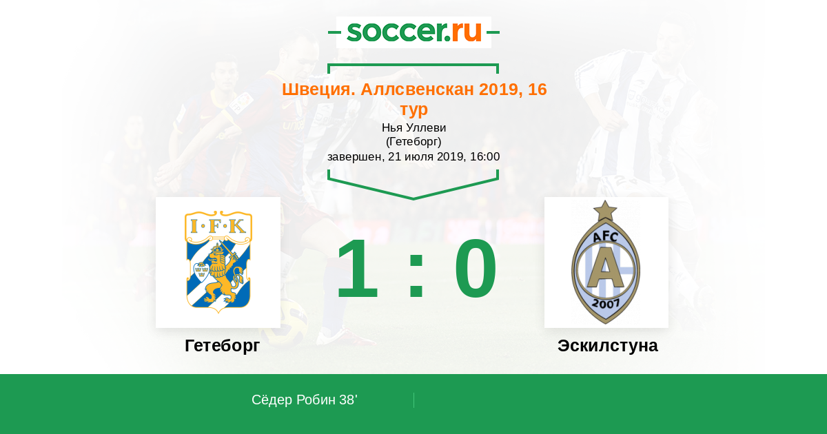 Гетеборг - Эскилстуна: обзор матча 21 июля 2019