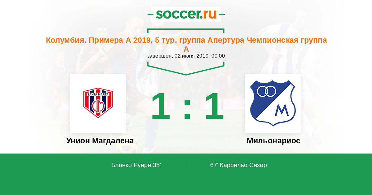 Унион Магдалена - Мильонариос: обзор матча 2 июня 2019
