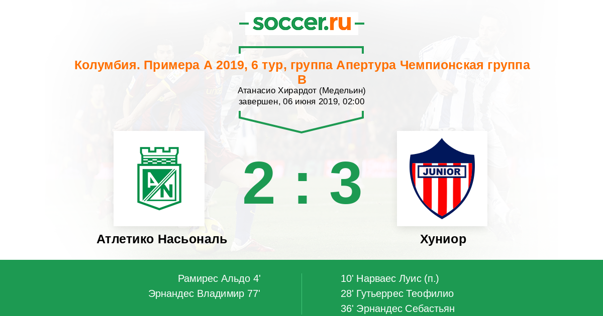 Атлетико Насьональ - Хуниор: обзор матча 6 июня 2019