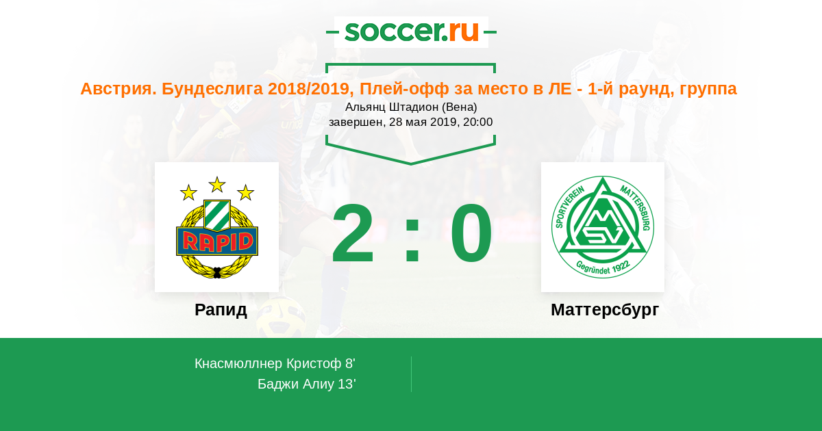 Рапид - Маттерсбург: обзор матча 28 мая 2019