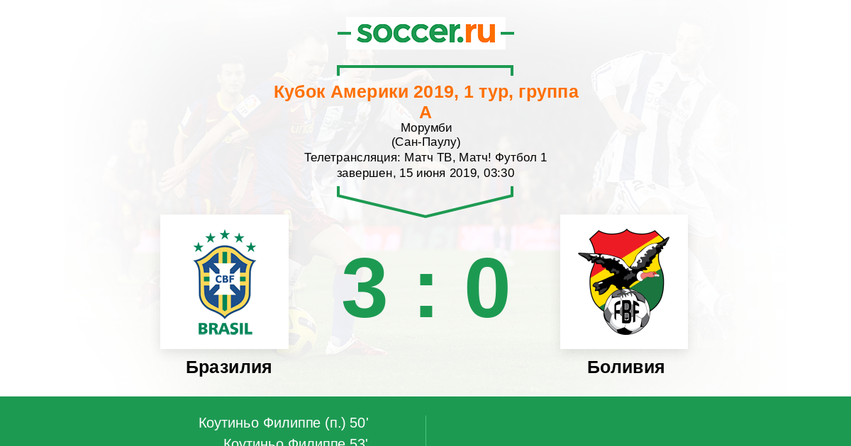 Бразилия - Боливия: обзор матча 15 июня 2019