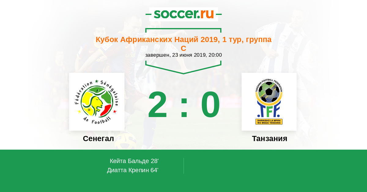 Сенегал - Танзания: обзор матча 23 июня 2019