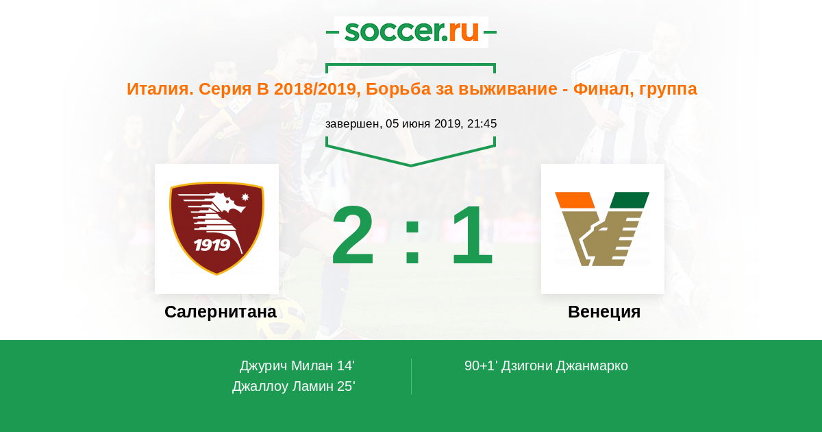Салернитана - Венеция: обзор матча 5 июня 2019