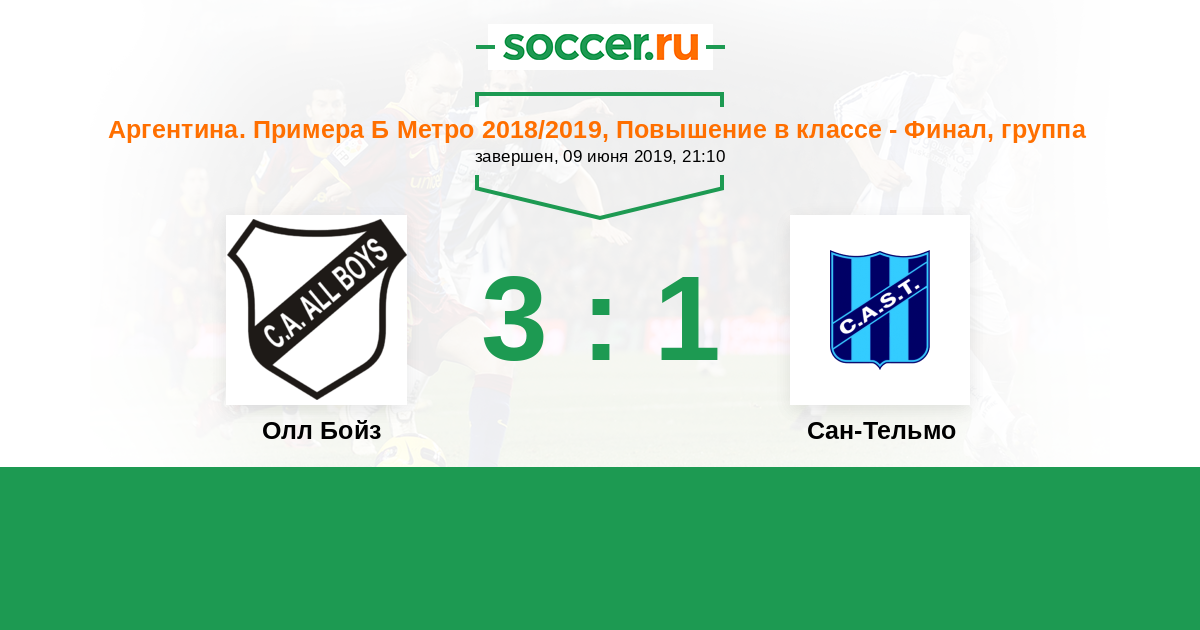 Олл Бойз - Сан-Тельмо: обзор матча 9 июня 2019