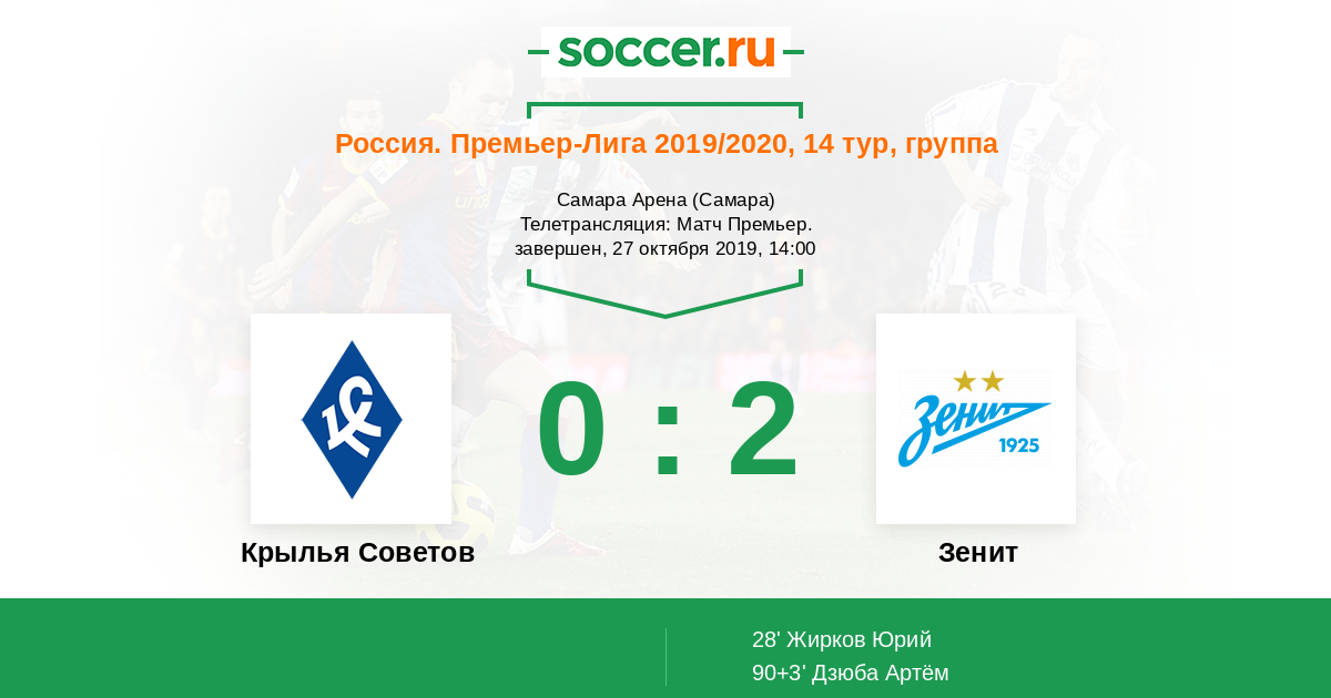 Хороший матч получился в Самаре, "Зенит" сыграл практически без ошибок и заслуженно заработал три балла в таблицу. "Крылья Советов" мало атаковали, это видно по статистике. Пока свой матч не сыграл "Локомотив", "Зенит" вышел на чистое первое место в таблице. Прямую текстовую онлайн трансляцию матча для вас провёл Старчеус Сергей, до новых встреч на https://www.soccer.ru !