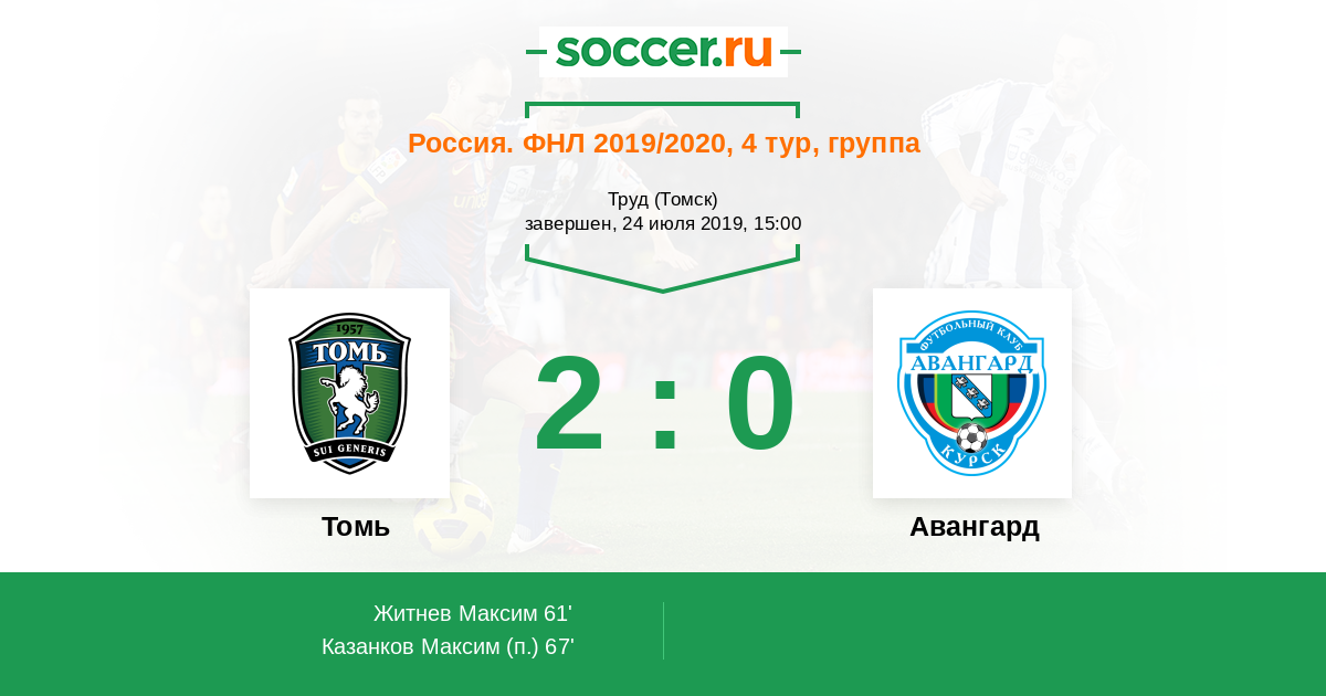 Томь - Авангард: обзор матча 24 июля 2019