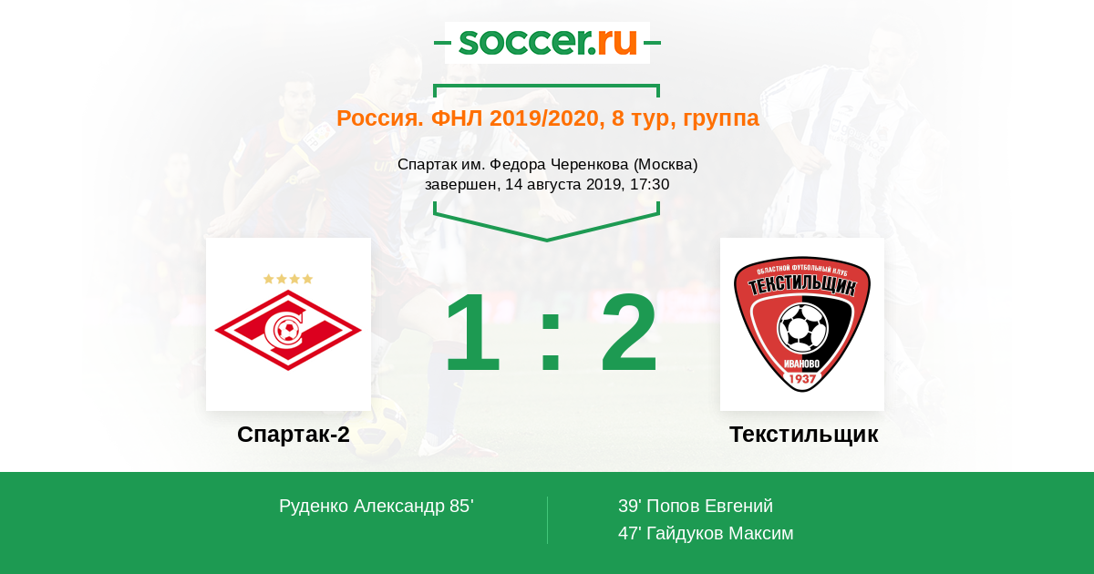 Спартак-2 - Текстильщик: обзор матча 14 августа 2019