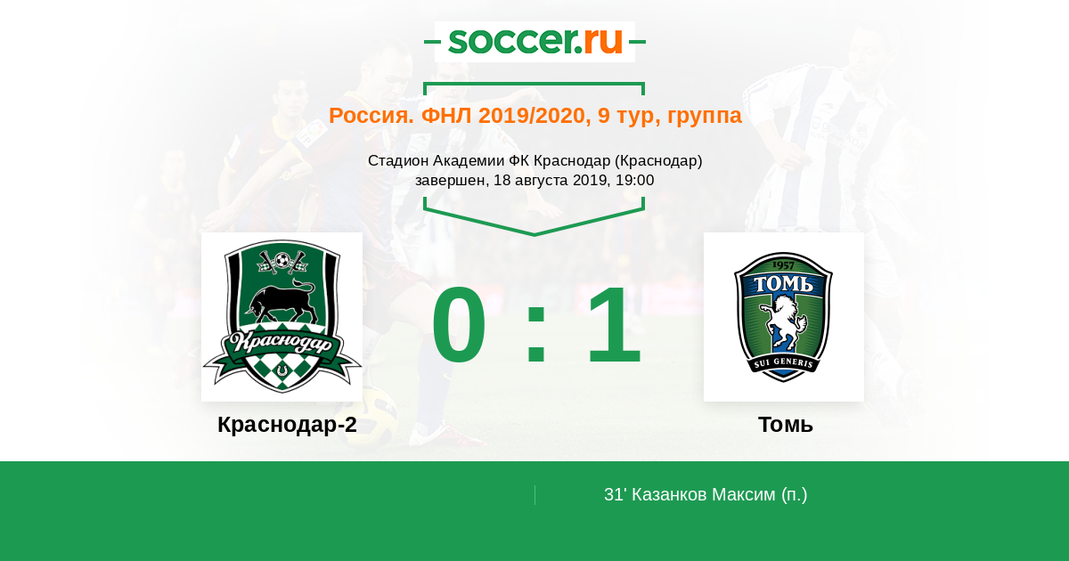 Краснодар-2 - Томь: обзор матча 18 августа 2019