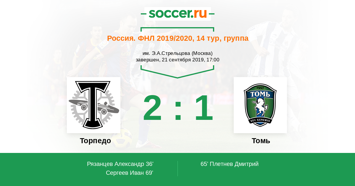 Торпедо - Томь: обзор матча 21 сентября 2019