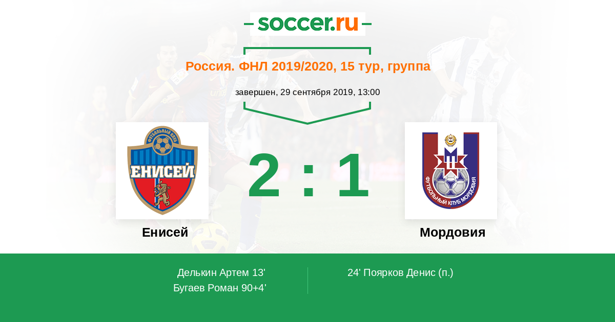 Енисей - Мордовия: обзор матча 29 сентября 2019