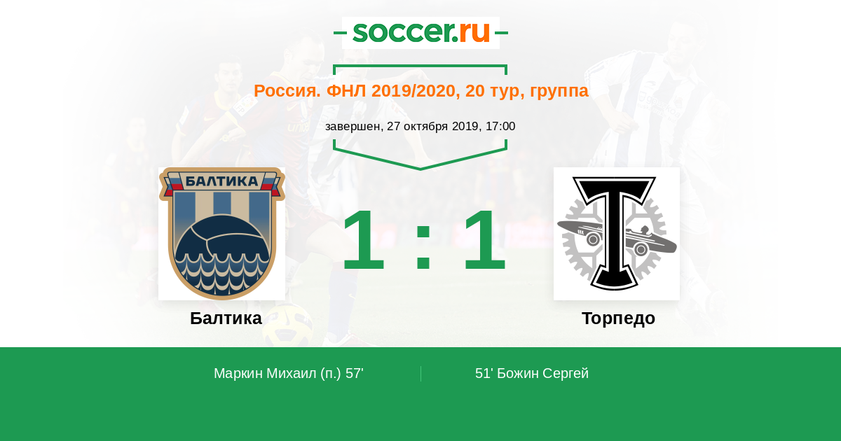 Балтика - Торпедо: обзор матча 27 октября 2019