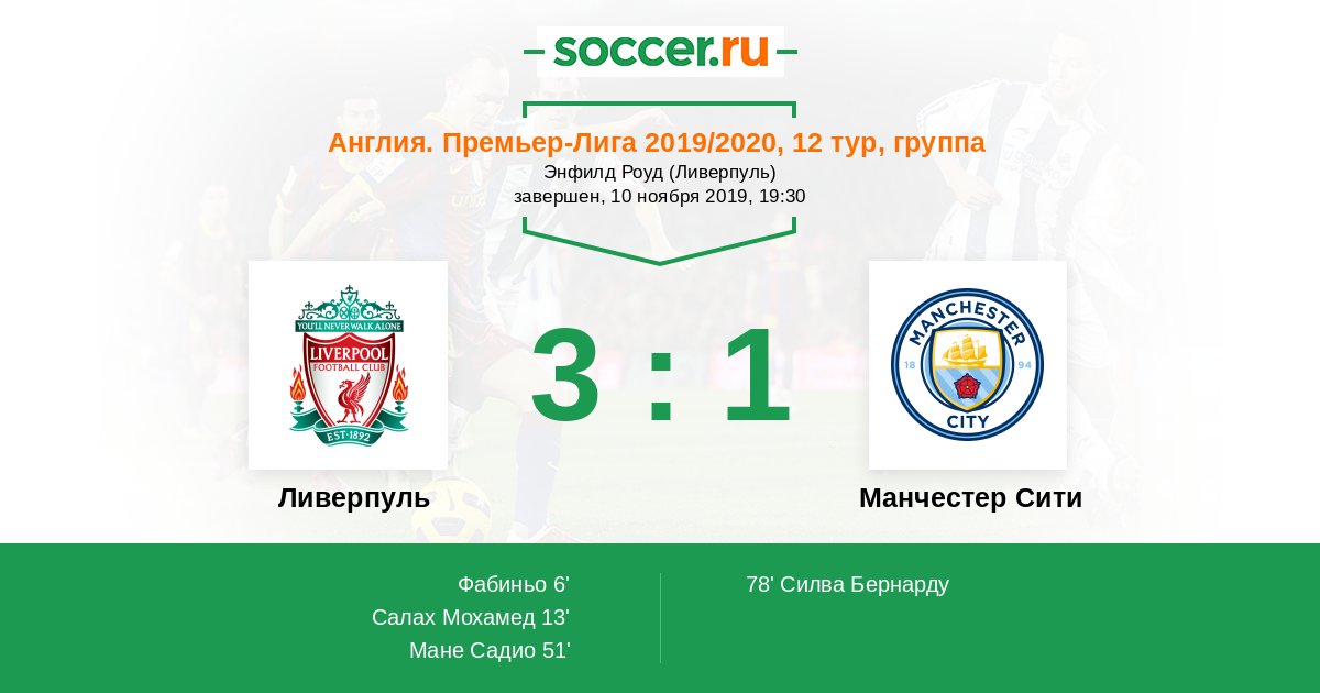Ливерпуль - Манчестер Сити: обзор матча 10 ноября 2019