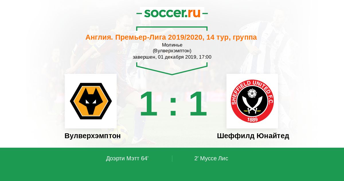 Вулверхэмптон - Шеффилд Юнайтед: обзор матча 1 декабря 2019
