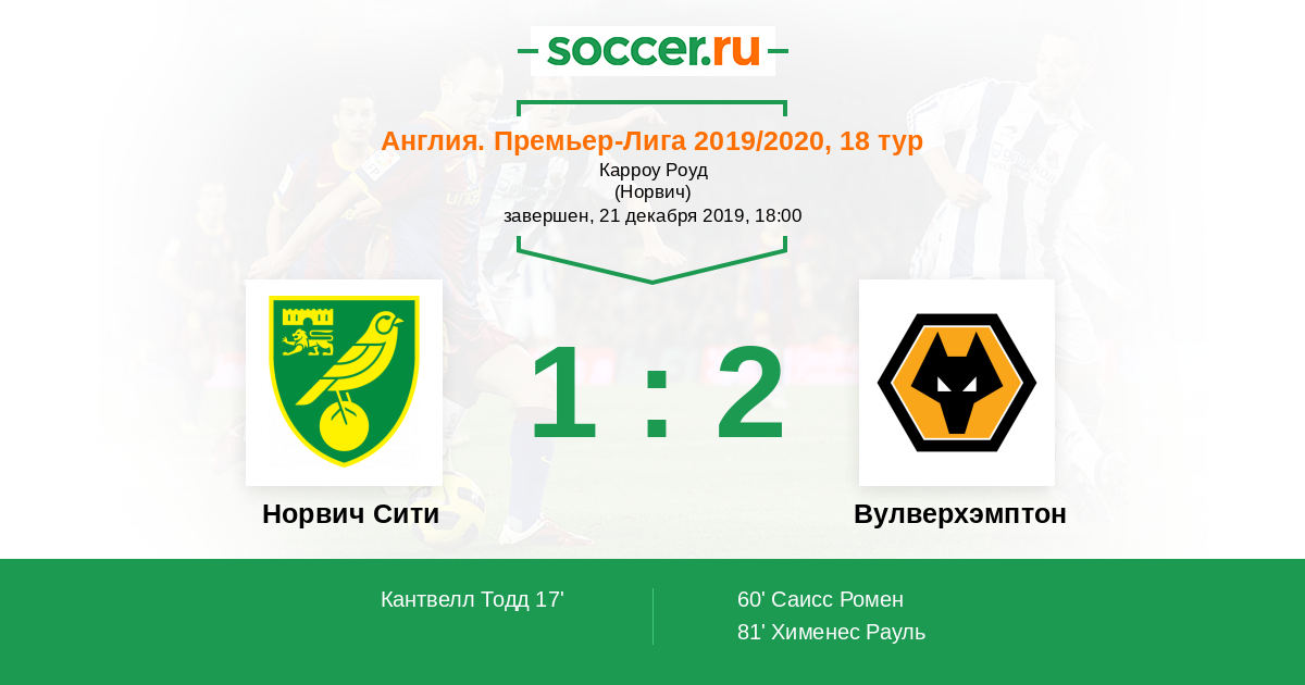 Норвич Сити - Вулверхэмптон: обзор матча 21 декабря 2019