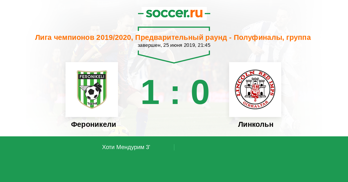 Фероникели - Линкольн: обзор матча 25 июня 2019