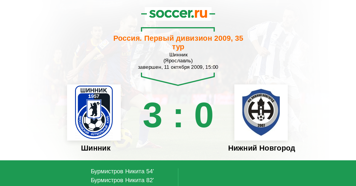 Шинник - Нижний Новгород: обзор матча 11 октября 2009