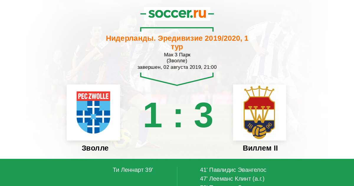Зволле - Виллем II: обзор матча 2 августа 2019