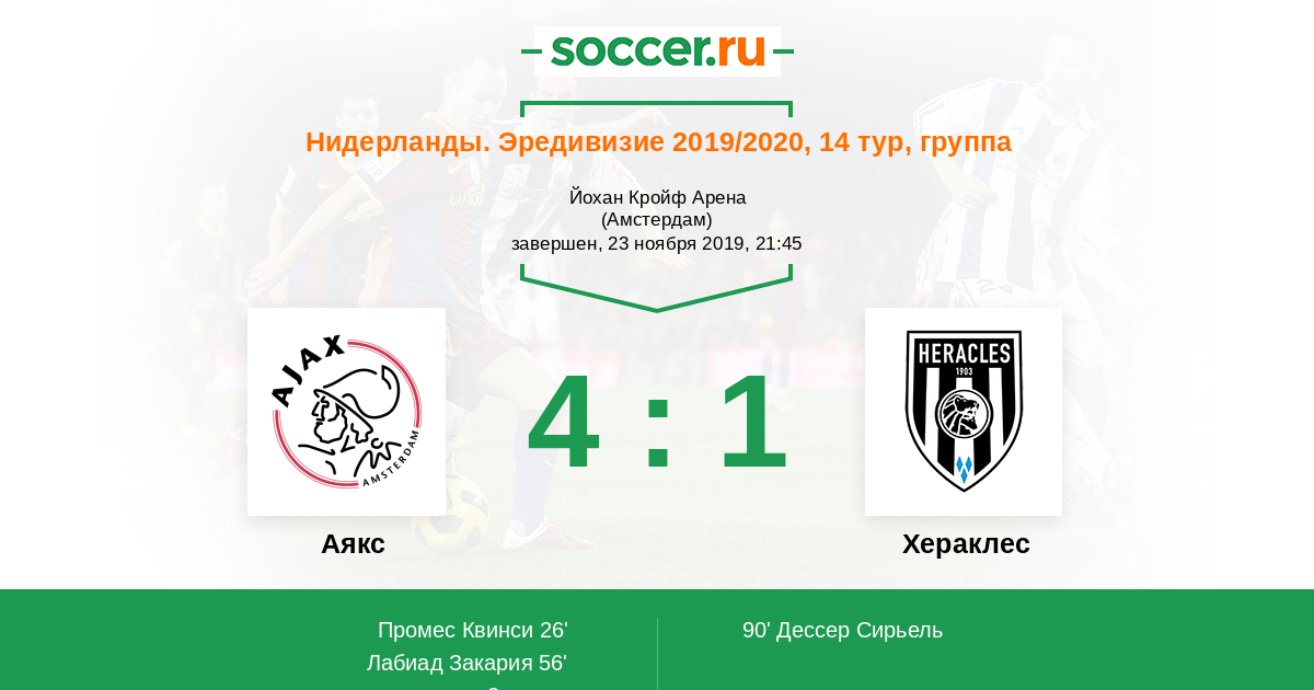 Аякс - Хераклес: обзор матча 23 ноября 2019