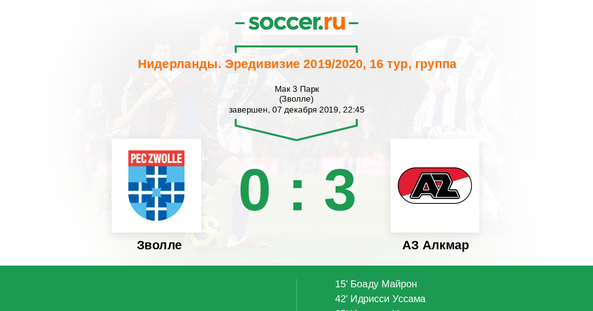 Зволле - АЗ Алкмар: обзор матча 7 декабря 2019