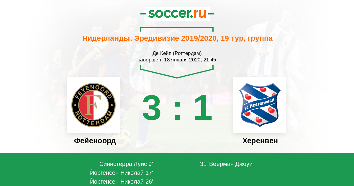 Фейеноорд - Херенвен: обзор матча 18 января 2020