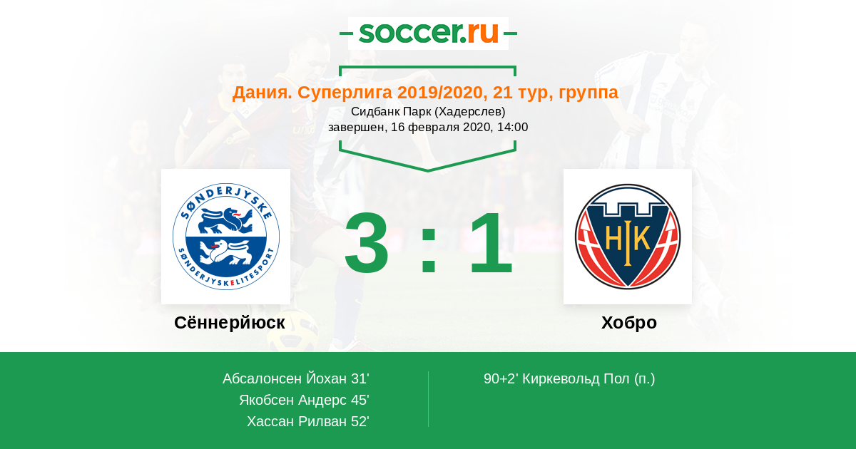 Сённерйюск - Хобро: обзор матча 16 февраля 2020
