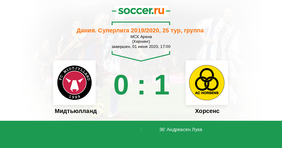 Мидтьюлланд - Хорсенс: обзор матча 1 июня 2020
