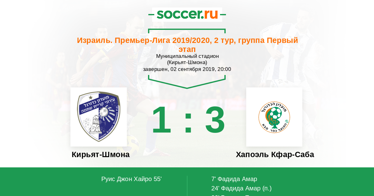 Кирьят-Шмона - Хапоэль Кфар-Саба: обзор матча 2 сентября 2019