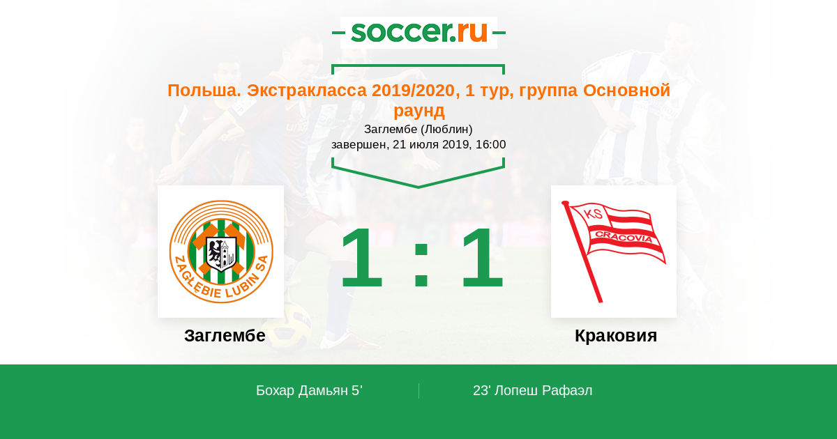 Заглембе - Краковия: обзор матча 21 июля 2019